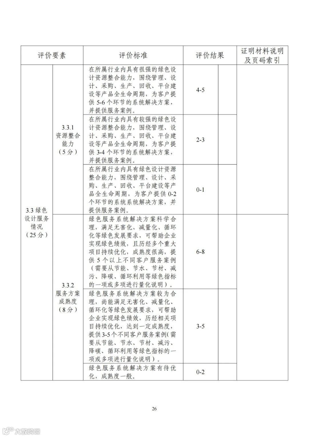 企业绿色设计实力强,具有夯实的绿色设计服务基础,研发和应用推广绿色设计与制造关键技术;产品符合绿色产品评价相关标准并积极推广绿色产品,或者具有较强的绿色设计资源整合和服务能力并为行业客户提供优质绿色服务;企业自身绿色发展水平较高,或者绿色服务实施效果和成效显著。