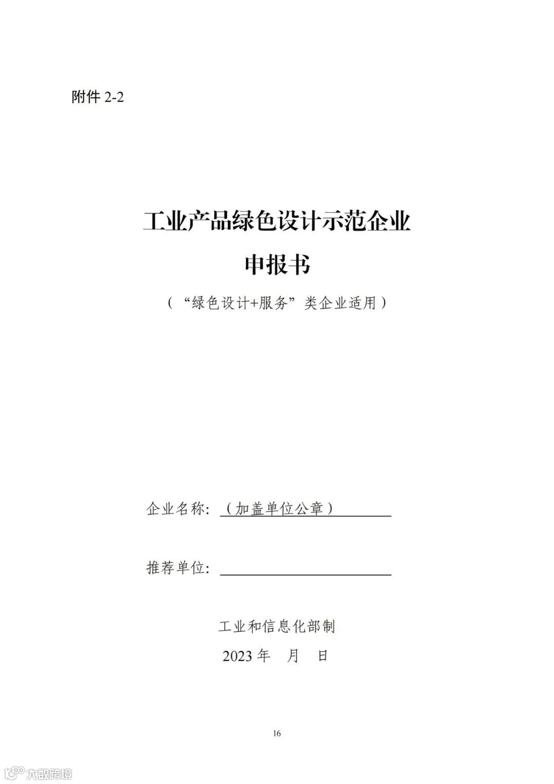 请申报企业2023年6月16日前将工业产品绿色设计示范企业(第五批)申请表(附件1)、第五批工业产品绿色设计示范企业申报书(附件2)等电子版材料通过工业节能与绿色发展管理平台