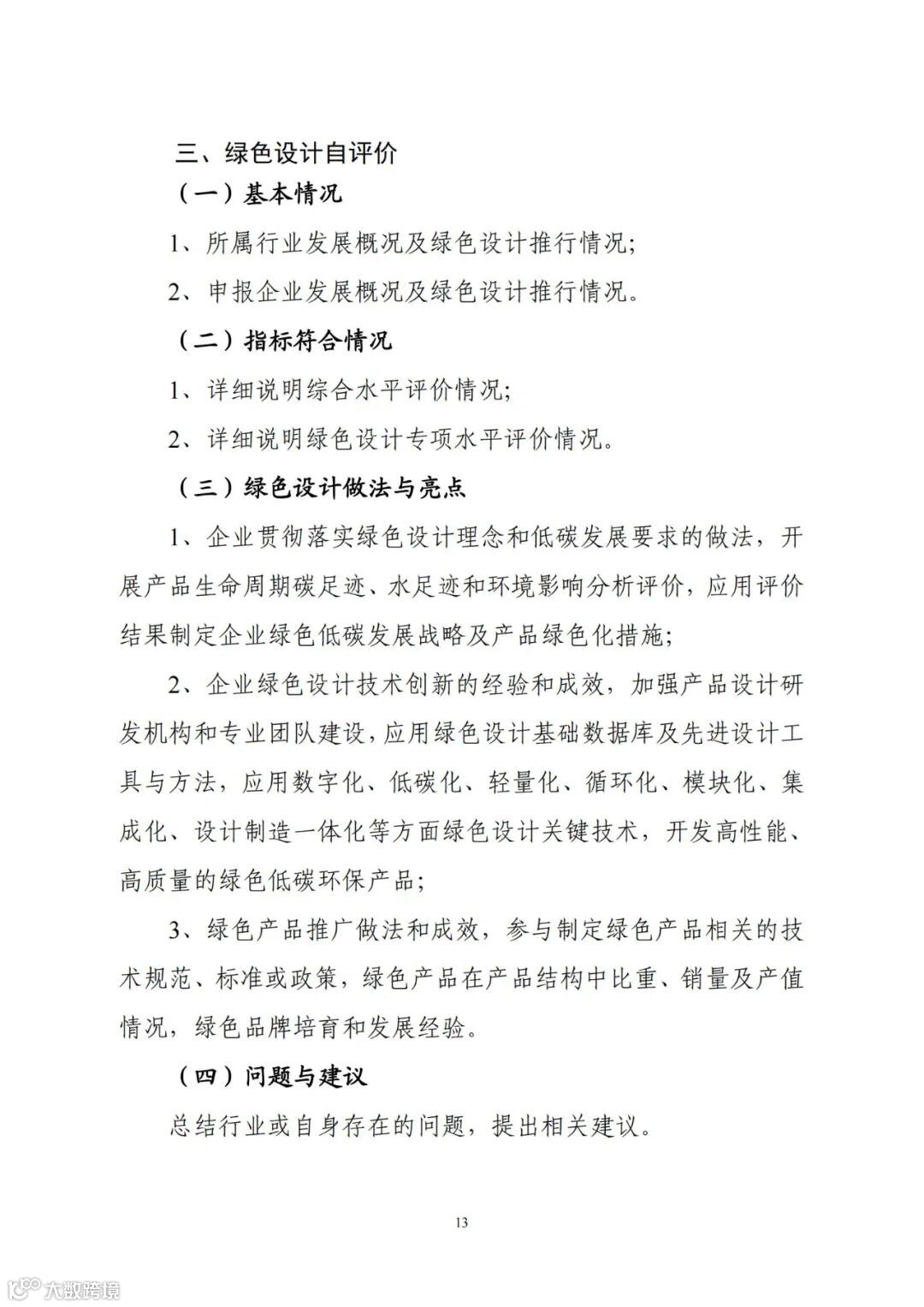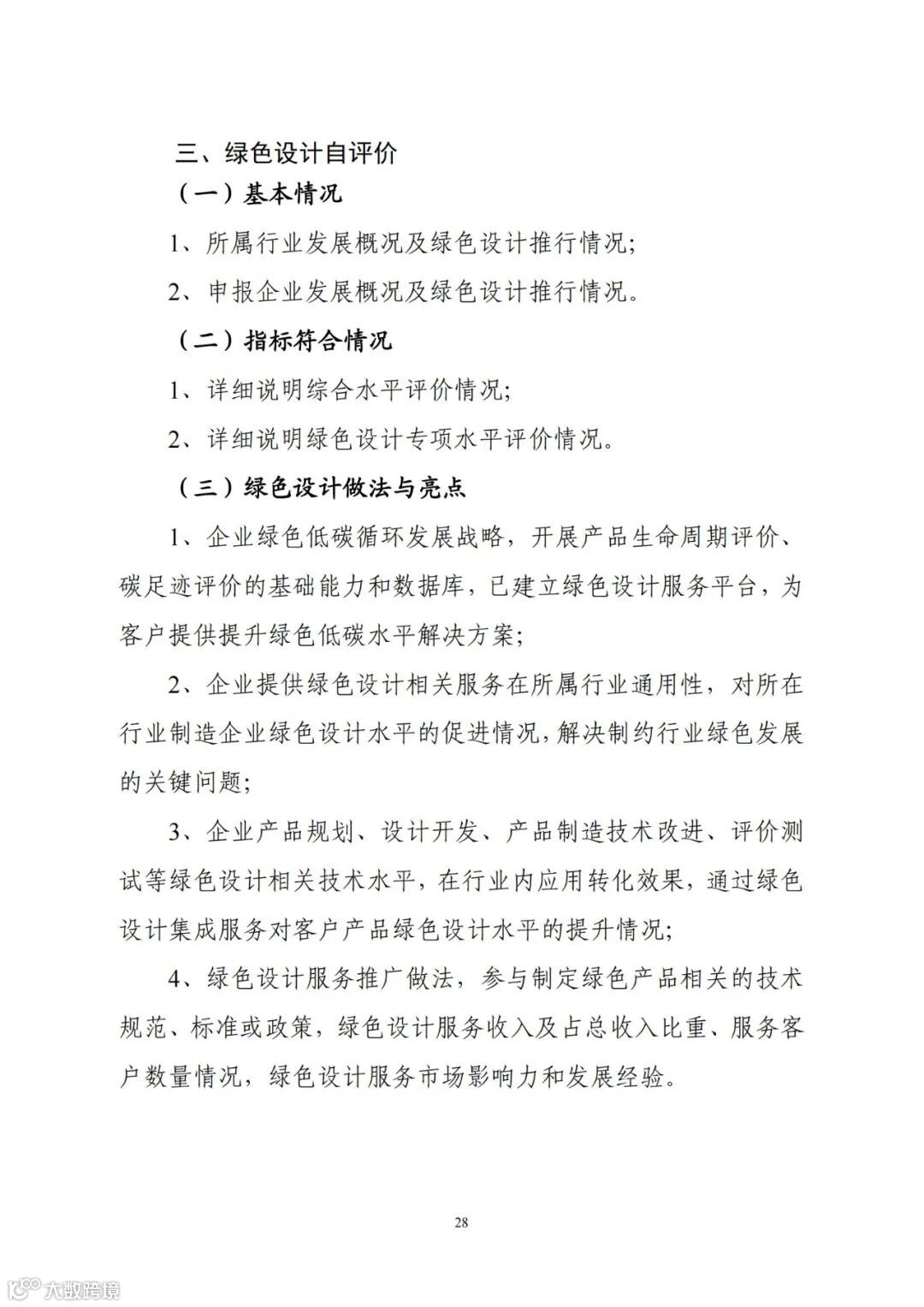 请申报企业按照《工业产品绿色设计示范企业申报书》(附件2)有关要求开展自评价和打分,编制申报书。