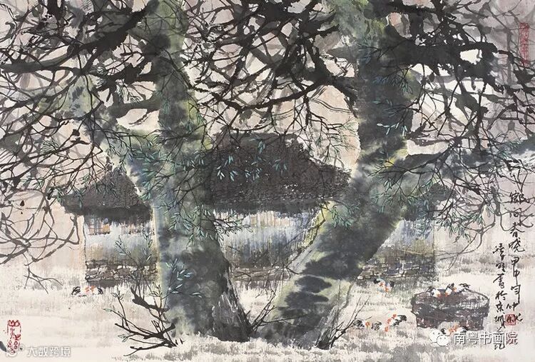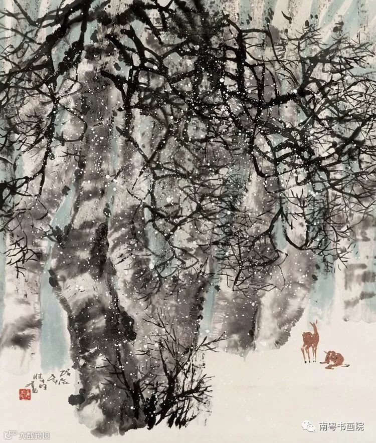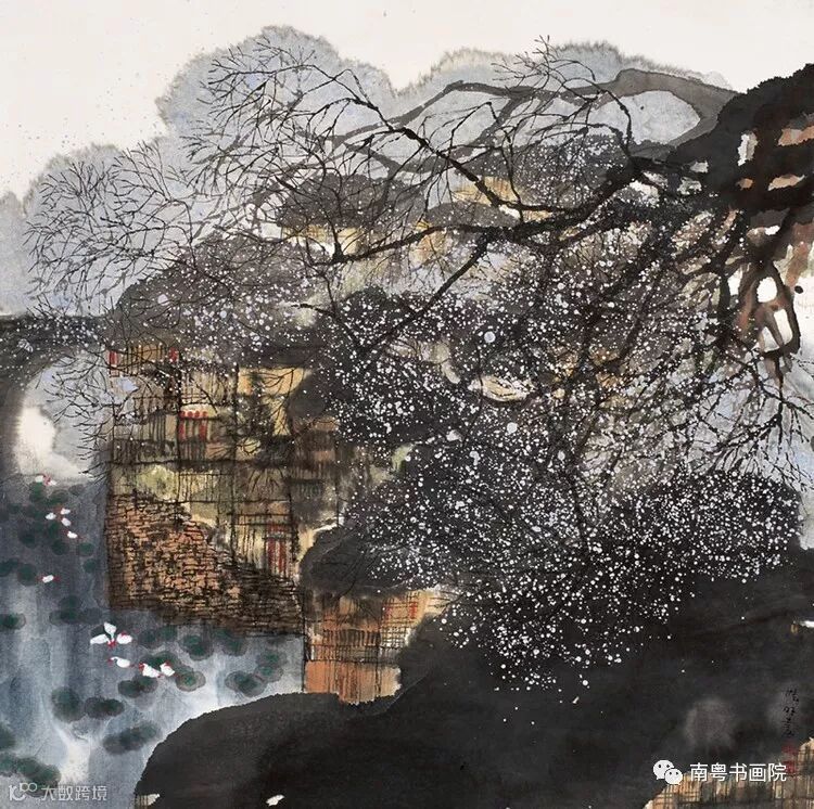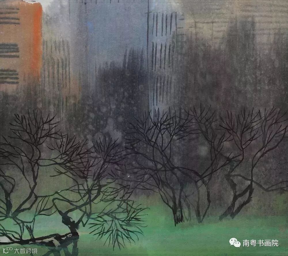 他注重吸取西画的表现手段和长处,而将其巧妙的融合到水墨画中,善於利用色彩来营造作品的氛围,并适当的运用新材料、新工具和新技法来尝试绘画的效果。他不但是一个勤于创作的人,还是一个在艺术上少有保守意识的人,在水墨画的变革和创新中进行了有成果的探索。