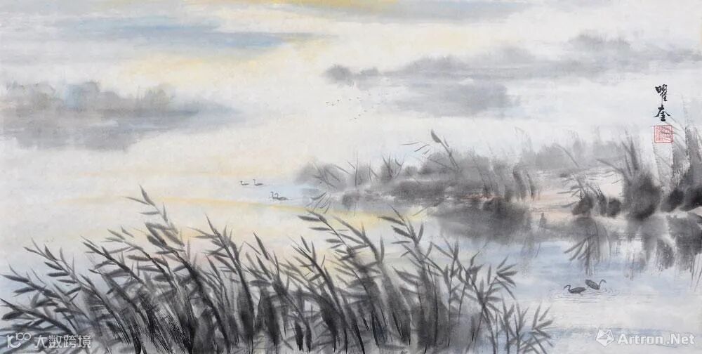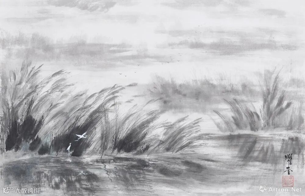 朱曜奎的淡墨画,把中国画的墨分五色与西方光影相结合,产生了中国传统水墨的干、湿、浓、淡、重、焦、枯、润的韵味,技法上勾勒、没骨,设色淡而不寡,虚实相生,体现了极强的写意性。观其画,如入人间仙境,让人仿佛置身梦境之中。