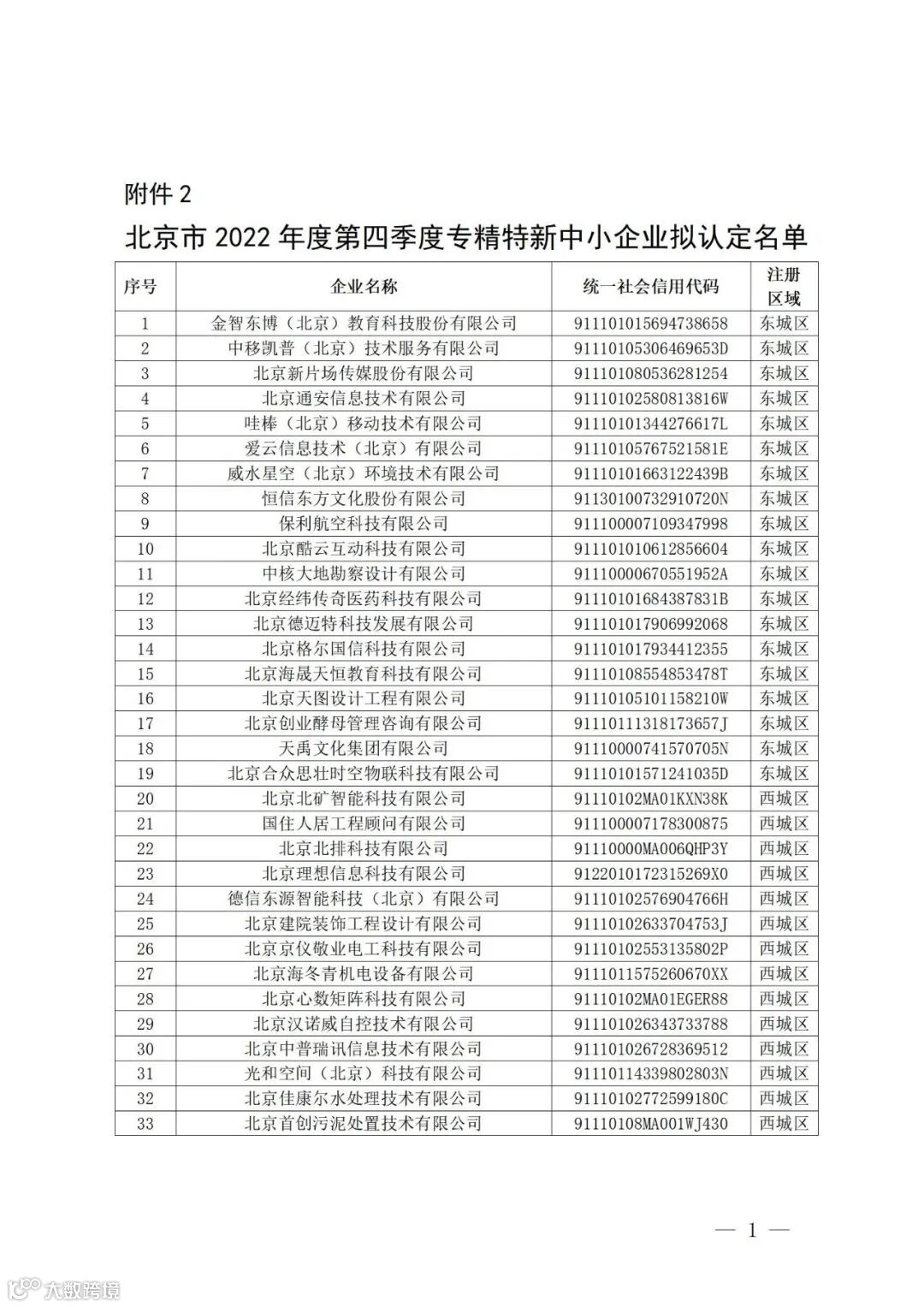 北京市经济和信息化局关于对北京市2022年第四季度专精特新中小企业名单进行公示的通知
