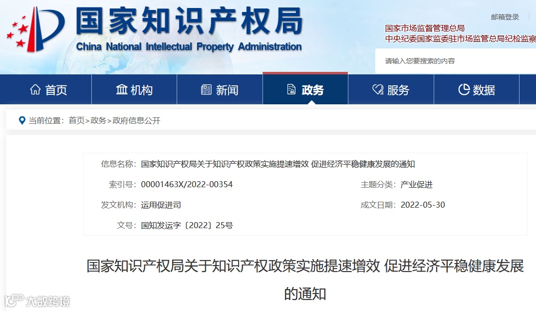 国家知识产权局关于知识产权政策实施提速增效 促进经济平稳健康发展的通知