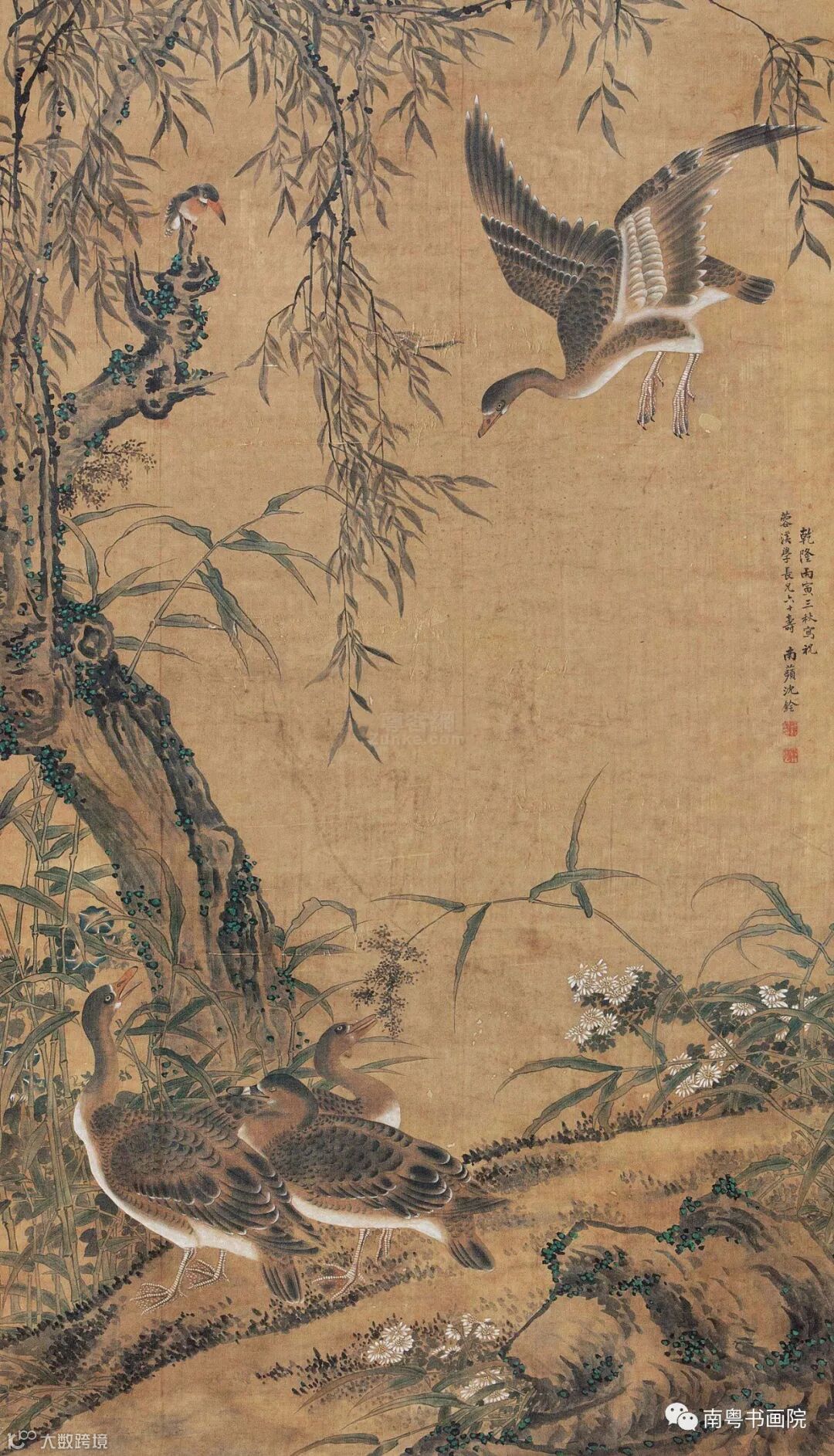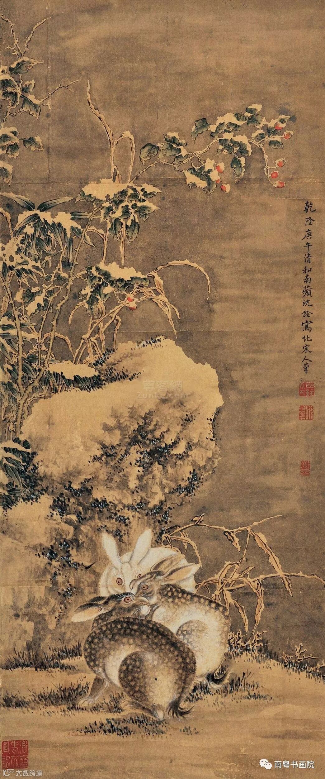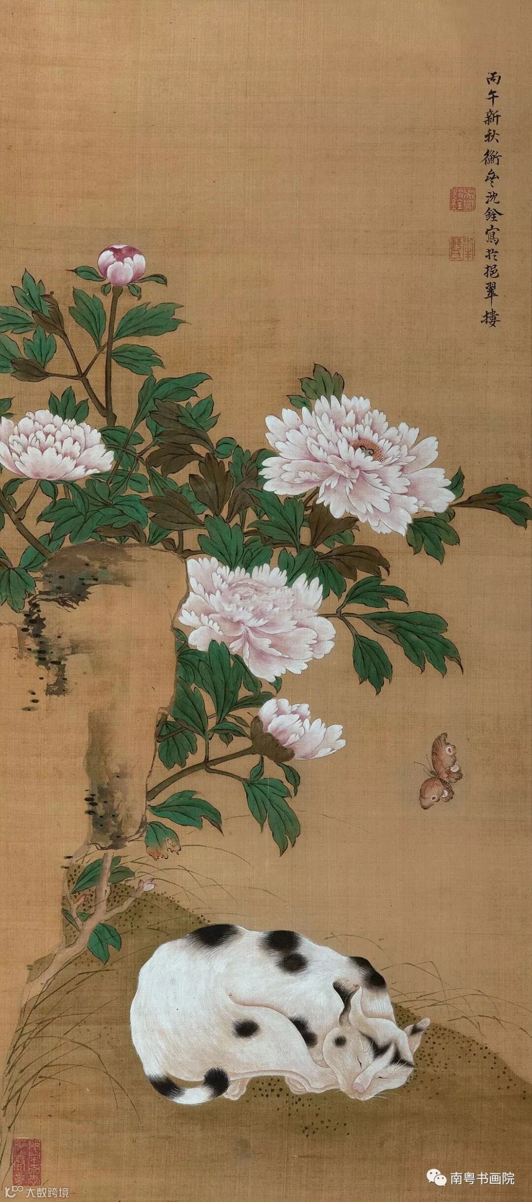 沈铨(1682—1760)字衡之,号南苹,浙江湖州(一作吴兴)人。工写花卉翎毛、走兽,以精密妍丽见长,也擅长画仕女。创“南苹派”写生画。曾受聘东渡日本,留三年始归,深受日人推崇,被称为“舶来画家第一”。