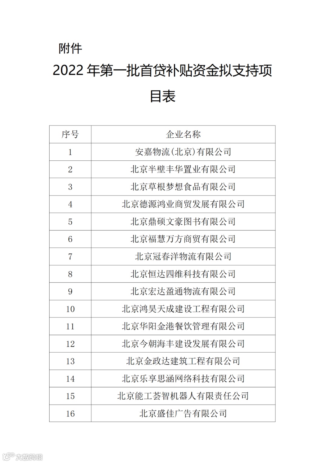 根据《北京市中小微企业首次贷款贴息及担保费用补助实施细则》要求,北京市经济和信息化局组织了2022年第一批中小微企业“首次贷款”补贴资金申报工作,现将拟支持项目进行公示。