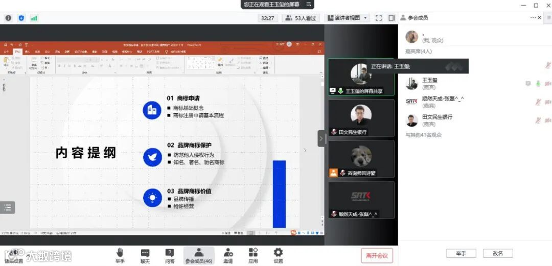 本次活动通过线上举行,活动形式新颖独特;几位专家老师的课程分享让大家对金融、商标、专精特新等领域的专业知识有了更为深入的了解,课后还有精美礼品相送,顺然天成给大家提供了一个学习交流平台的同时,还让大家有了知识和物资的双重收获!