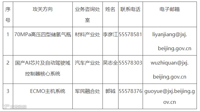 3.各攻关方向联系方式详见下表: