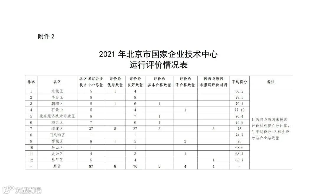 2022年,国家发展改革委建立了存量评价与增量认定挂钩机制,根据2021年北京市国家企业技术中心运行评价情况(附件2),我们综合考虑2021年国家企业技术中心运行评价结果和有关政策要求,现将各区推荐名额分配如下: