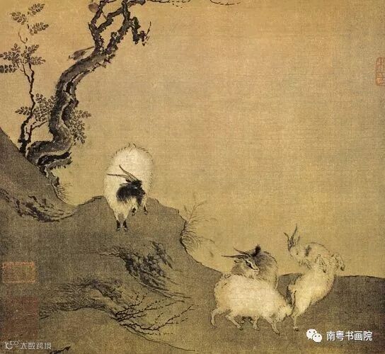 宋代陈居中《四羊图》 绢本设色册页 22.5×24厘米 北京故宫博物院藏