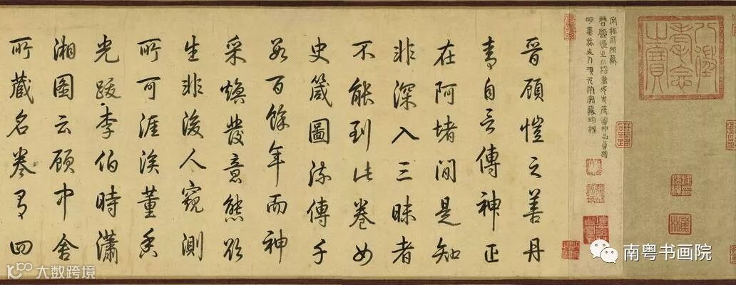 拖尾项元汴篆书记语云:“宋秘府所藏。晋顾恺之小楷书《女史箴图》,神品真迹。明墨林山人项元汴家藏珍秘。”