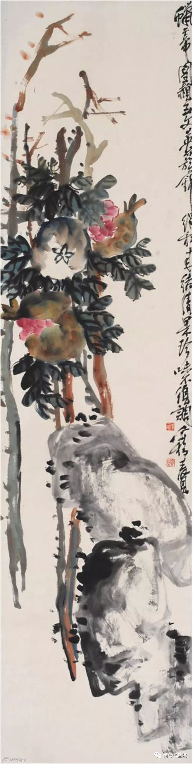 擅花卉,擅书法。国画创作深得吴昌硕画风之精髓,吸取青藤、白阳、八大、石涛诸家之长,另创新意。所作笔墨浑厚遒劲,奔放如行云流水,拙重处如屈铁蟠龙,浑穆生动,晚年盖以篆籀之笔放笔直写,藤木花果,具见精神。书法诸体皆精,尤善《石鼓文》字,行草酷似吴昌硕,笔势苍劲活泼,具有动感,雄健奔放。篆刻则直逼秦汉,平实中求生动,拙中有奇。作画善将诗、书、画、印熔为一炉,相得益彰。