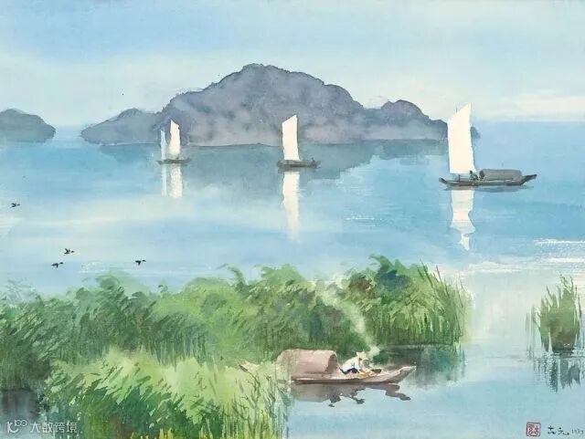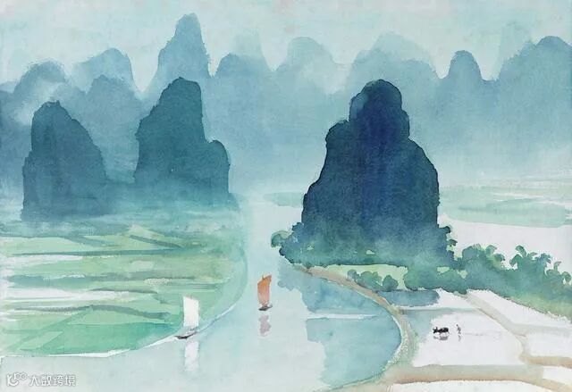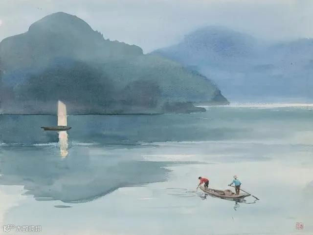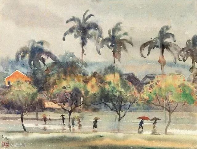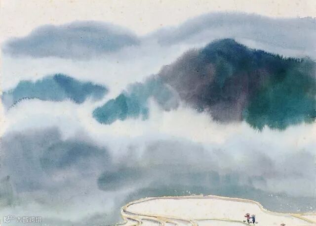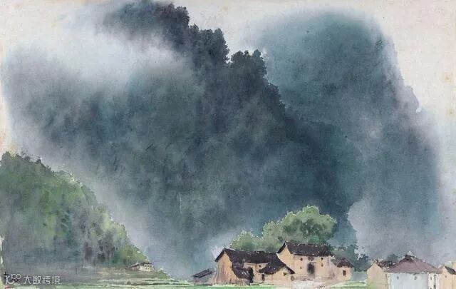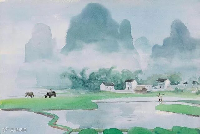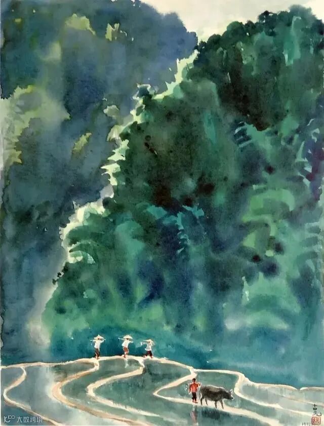 古元的水彩画更多的表现出田园风光,给人一种平淡自然之感。他能够把传统水墨画的意境融入到水彩画之中,形成一种绚丽多彩的画面。