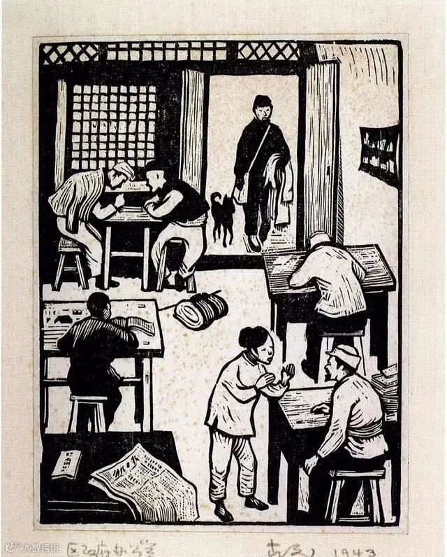 古元(1919.10—1996.8)广东中山人。字帝源。擅长木刻、水彩画。1938年赴延安,先后在陕北公学、鲁迅艺术学院学习,后到农村参加基层工作,业余进行木刻创作,参加1942年在重庆举办的全国木刻展览会,徐悲鸿先生撰文称赞古元作品。