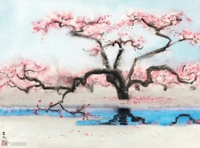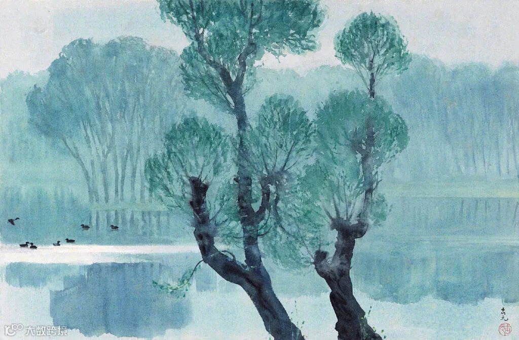 我们知道传统的水墨画以笔墨丰富多变为主,通过墨色的浓淡运用来表达山水、人物、花鸟的画面气韵,古元在具备这些基础元素的同时又能够把色彩融入其中,给人一种清新淡雅的艺术境界。
