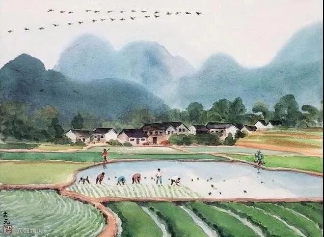 古元的水彩画给我们的启发不仅仅是技法上、构图上的启发,还有气韵上的表达,当绘画成为一种语言,他的表达方式给我们带来了一定的启发。