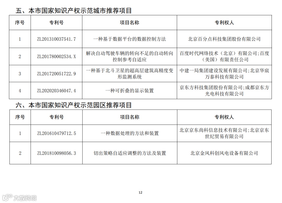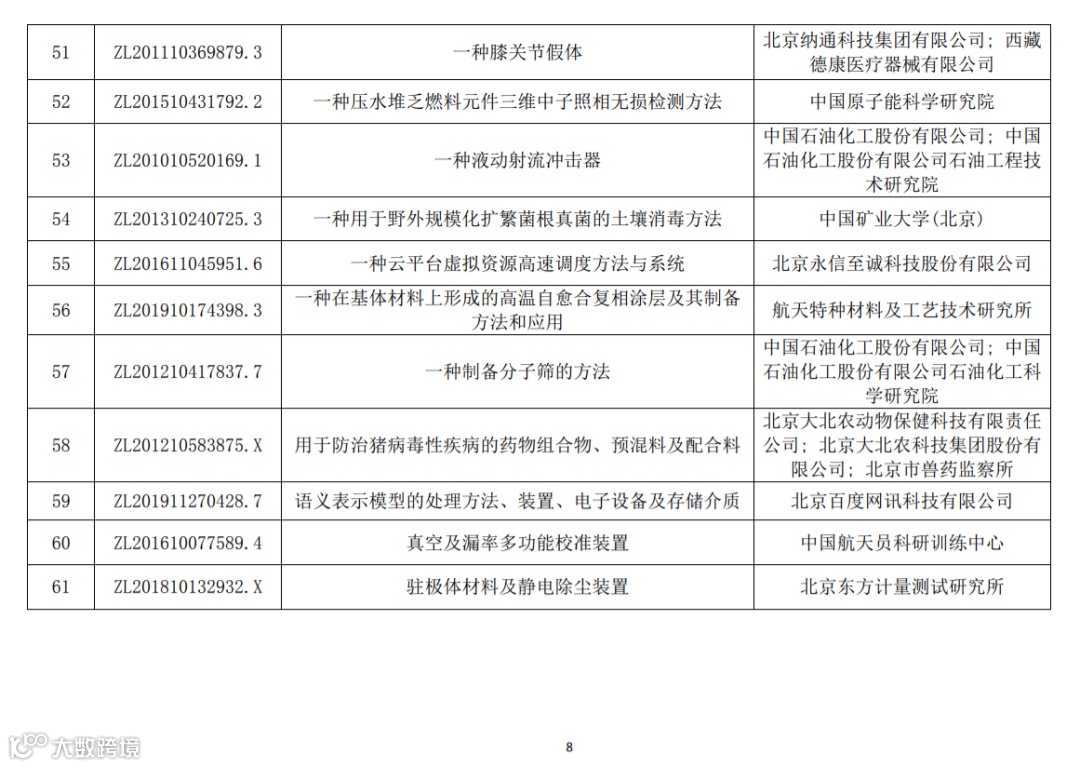 根据国家知识产权局《关于评选第二十三届中国专利奖的通知》(国知发运函字〔2021〕124号)和《北京市知识产权局关于开展北京地区第二十三届中国专利奖申报推荐工作的通知》,北京市知识产权局组织开展了北京地区第二十三届中国专利奖项目申报、受理、评审和核查等工作,现将拟推荐项目名单予以公示,公示期为2021年10月25日至2021年10月29日。