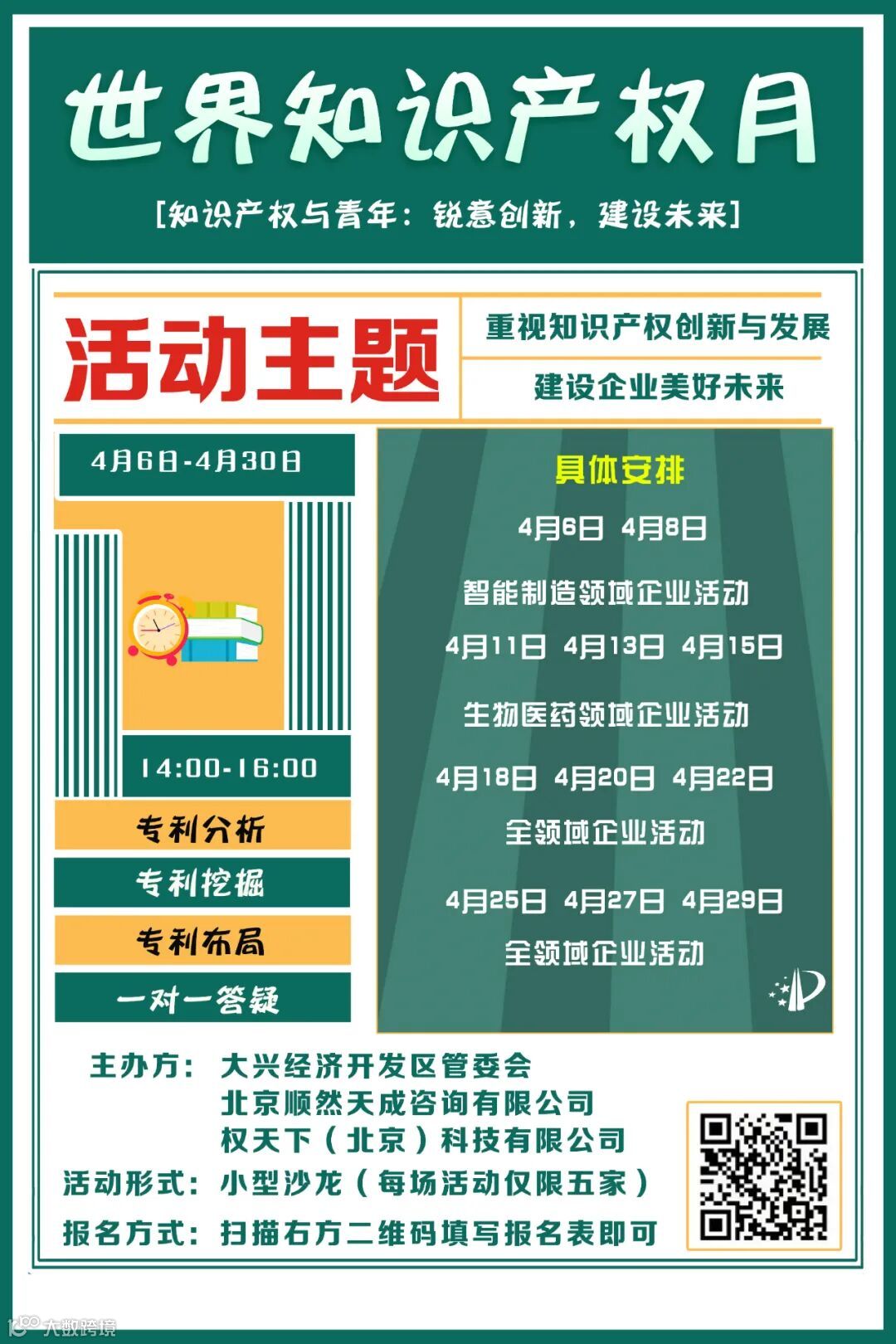 为了响应世界知识产权组织号召,结合2022年世界知识产权日“知识产权与青年:锐意创新,建设未来”的主题,弘扬“知识产权人”无私奉献的精神,顺然天成特联合知晟权举办“重视知识产权创新与发展,建设企业美好未来”知识产权月主题沙龙(活动不收取任何费用)。
