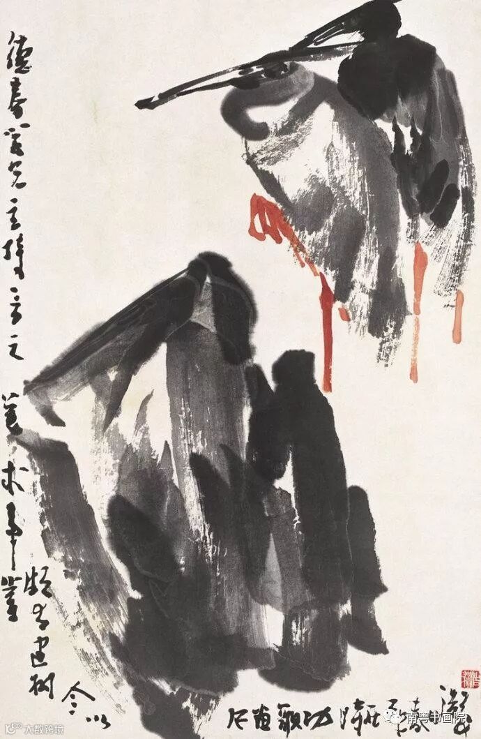 在写生的过程中,有时候面对着真实的模特、景物,却画出了完全不同于的造型。其实这时的写生已加入了很多创作性的元素,融入了更多自己的语言感受,写生和创作之间的界限十分模糊。在我看来,写生也要注重艺术的本质,艺术在于表现,而不是再现,国画重在笔墨形式,造形要为笔墨服务,而不是笔墨服务于造形。正是由于这种观念的支撑,我的写生作品从一般的写意性水墨,逐渐向大写意的方向过渡。应该说写生是我创作大写意画之前的一种演练,从中可以看到一些简化变形的端倪。