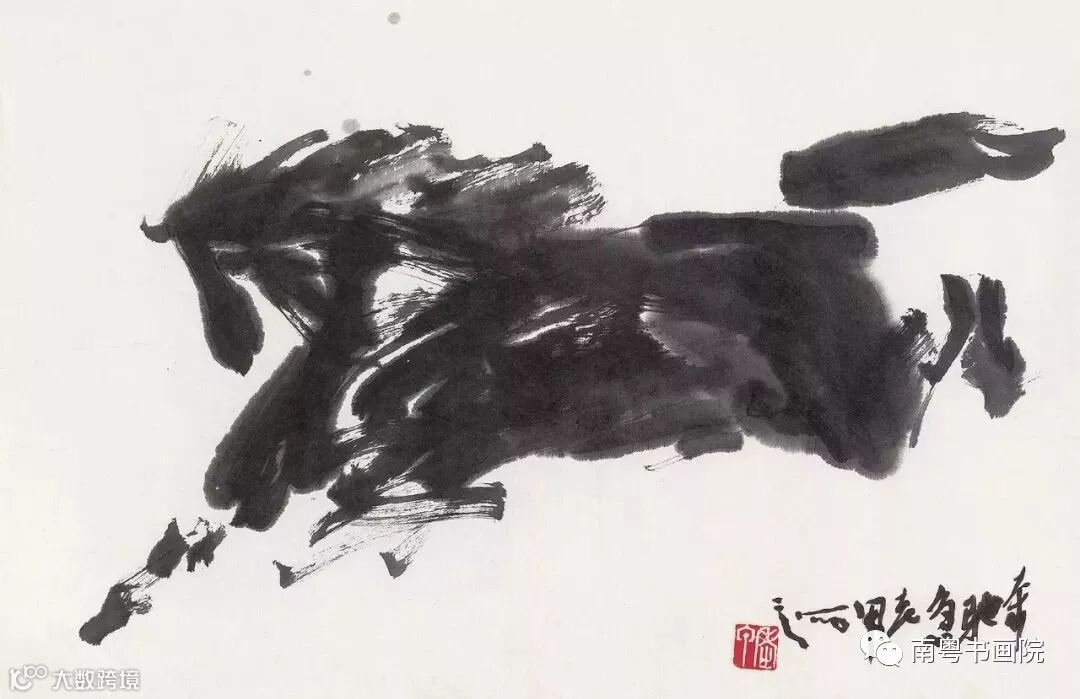 在走过很多地方以后,觉得自己的审美视角在不断扩大,笔墨也逐渐放开,更喜欢构建博大雄浑的大格局了。当我站在广袤的草原上,那种天苍苍,野茫茫的辽阔无际,令人感受到的是一种无言的天地大美,不知不觉间心胸也为之豁然了。在浩瀚的自然中,我不仅寻到了绘画的灵感,也找到了心灵的原乡。另外,这些年的写生锻炼了我的观察能力,为以后大写意水墨画的创作奠定了坚实的基础。像马系列的作品,若要追溯最初的灵感,则来自于草原上的骏马奔腾。当一群骏马从天边呼啸而来,在闪电般的驰骋中,人们看不到马的头颅、眼睛、蹄脚,只是感到一股强大的飓风,或是一片飘忽的云团,铺天盖地地席卷过来。同样,驰骋马上的牧民,也看不清眼耳鼻手,只是像风一样掠过衣服多彩的影子。正是这种瞬间的感受,促使我下笔的时候挣脱了形的束缚,转化为更富精神性的笔墨形式。