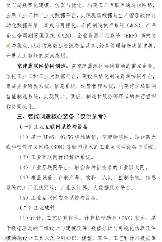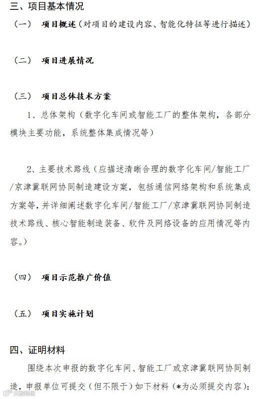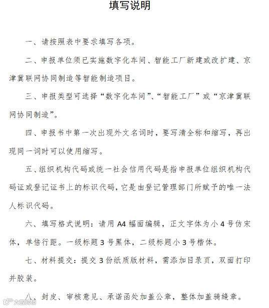 一、申报方向本次申报主要面向数字化车间、智能工厂、京津冀联网协同制造三个方向。