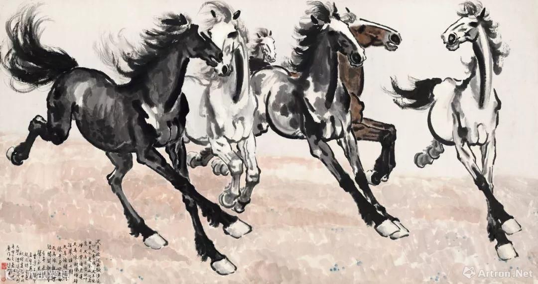 其中最为值得关注的当属是首次上拍的徐悲鸿《天马六骏》,这件博物馆级别的徐悲鸿作品,徐悲鸿曾经创作了三个版本的“群马”或是“天马”,这件是唯一一件民间收藏的巨幅徐悲鸿该系列的精品,此前从未出现在过公开交易场合中。