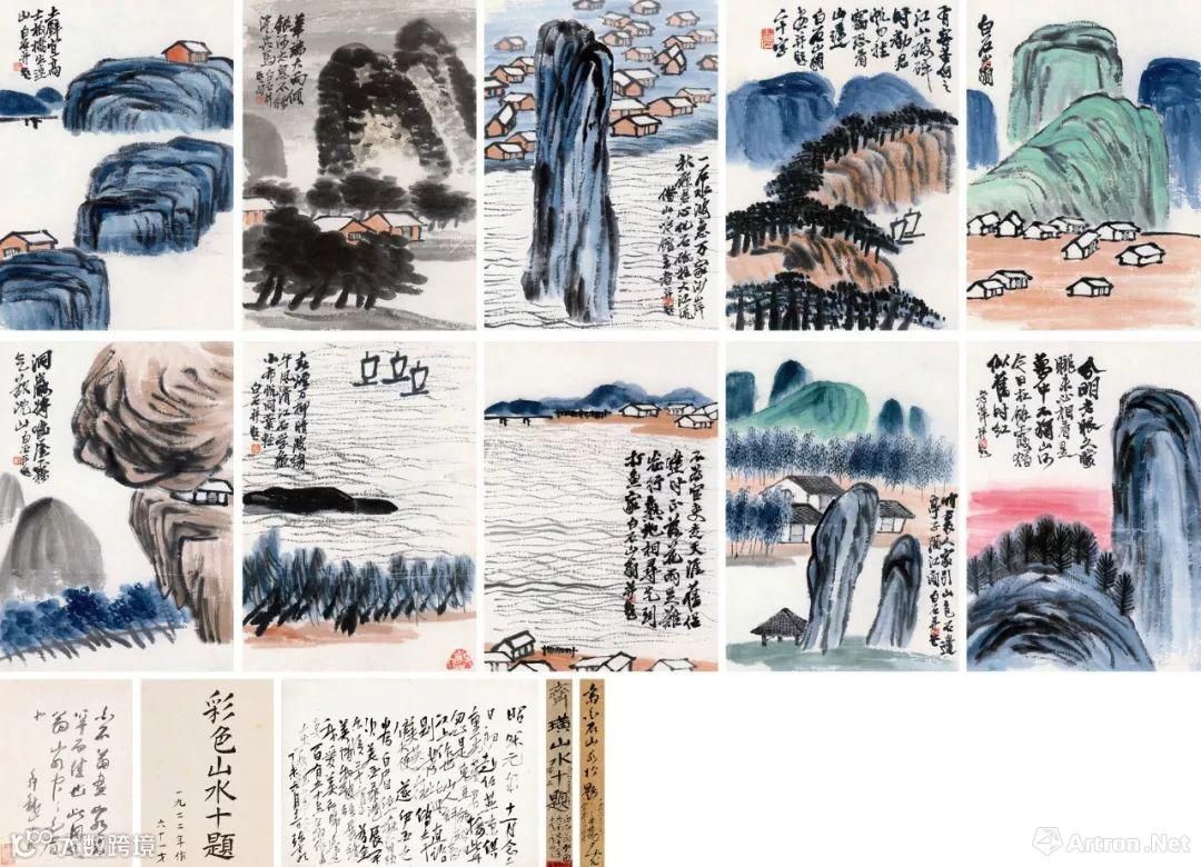 随后两件的齐白石《山水册页十开》和黄宾虹晚年《峨眉纪游》均是估价待询,尤其是被称为mini版齐白石十二条屏的十开山水册页,似乎每季保利拍卖中都有齐白石的册页出现,山水亦或是花卉虫鸟册页,这次这件齐白石创作于1922年的《山水册页十开》最终是以4900万元落槌,按15%的佣金计,是以5635万元成交。