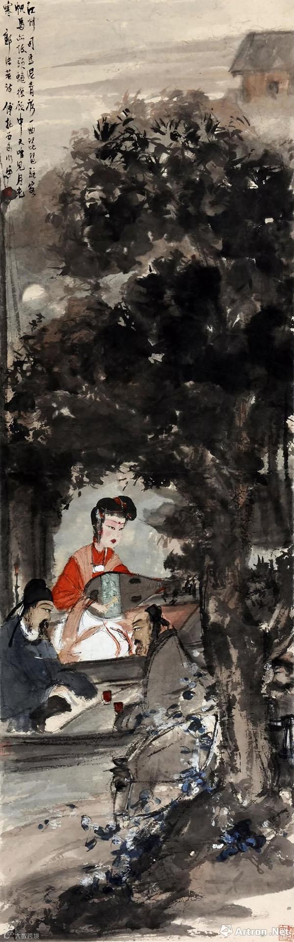 当晚的第二件亿元级别的拍品正是来自于傅抱石《琵琶行诗意》,傅抱石作为人物画的高手画家,最为擅长的当属是屈原的《九歌》和白居易的《琵琶行》,从1944年开始到1949年,傅抱石画过四五件《琵琶行》题材的作品,其中有一件尺幅巨大的藏于南京博物院。