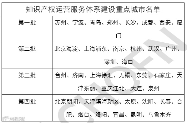 知识产权运营服务体系建设重点城市名单
