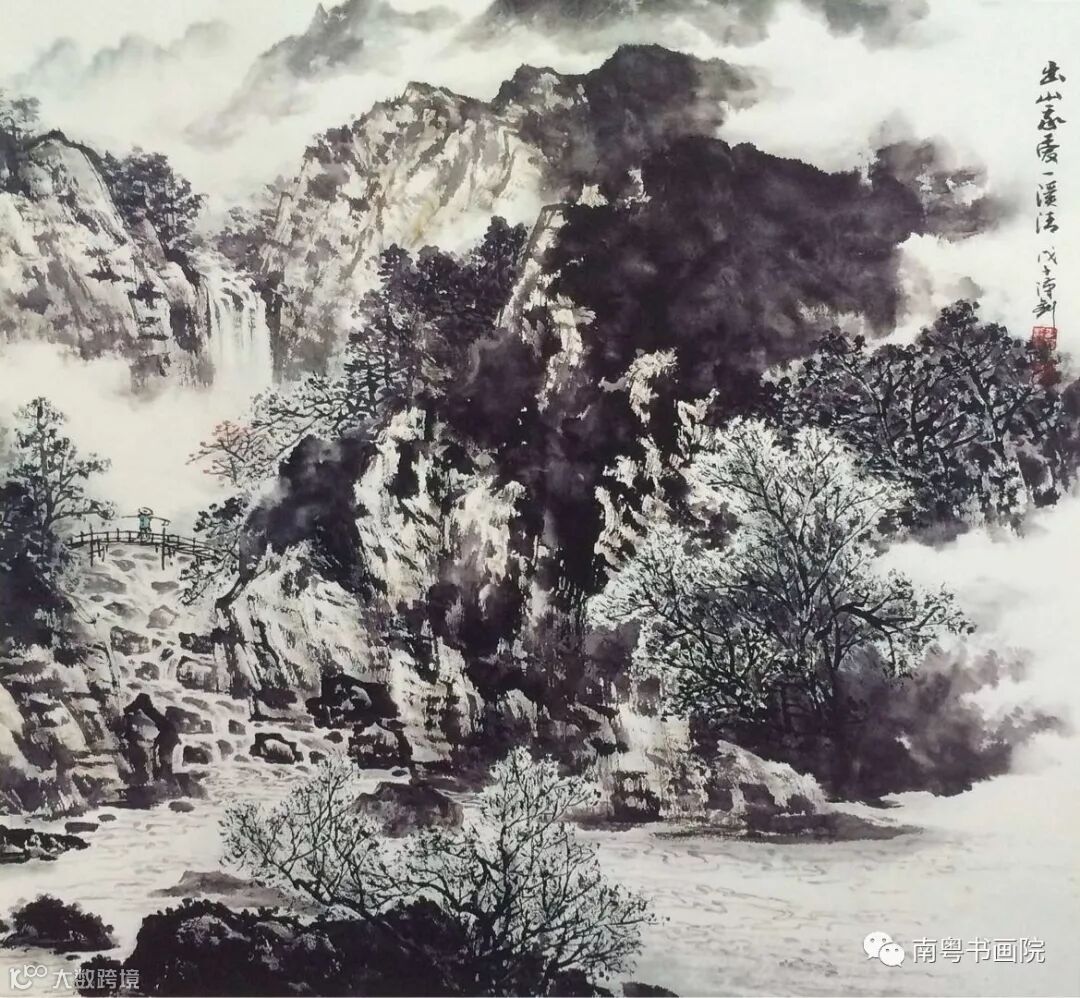 从前,我尝读过鲁迅先生翻译日本画家高岛北海的《写山要法》这本书,这本称为“屹立学界数十年,毫不少动”的山水画理论书,以“科学”的名义,以极端的地质学解构的方式,介入中国画的创作领域,却显现了他对中国画山水皴法的无知和对中国传统文化认识的浅薄。他不理解中国画艺术体系的博大精深的审美精神,视而不见云水的存在,漠不关心草木植被荣枯与四季时序给予山川灵性的情状,更不知道人心与自然相契合的那种激荡的情怀。我们的先贤早就说“受雨石肤响,流云山气灵”,又或有“精骛八极,心游万仞”的壮志与覃思,有“卧遊千里,喝令众山皆响”的艺术体验,这些是以表达中国人天人合一的理想的箴语,是如此的深刻和唯美,与挚爱生命、热爱生活的情愫如许一致,足见绘画最重那一个“情”字,机械的地质挂图那样的山水画应该摒弃。