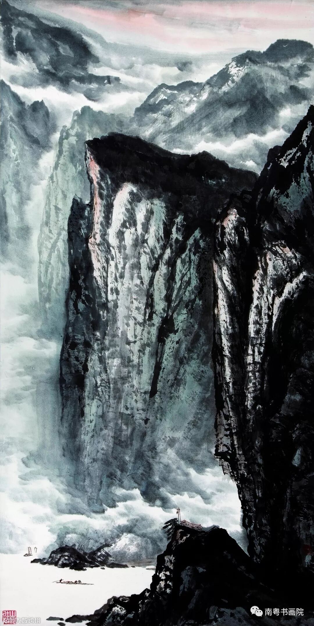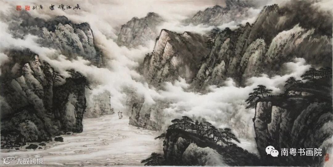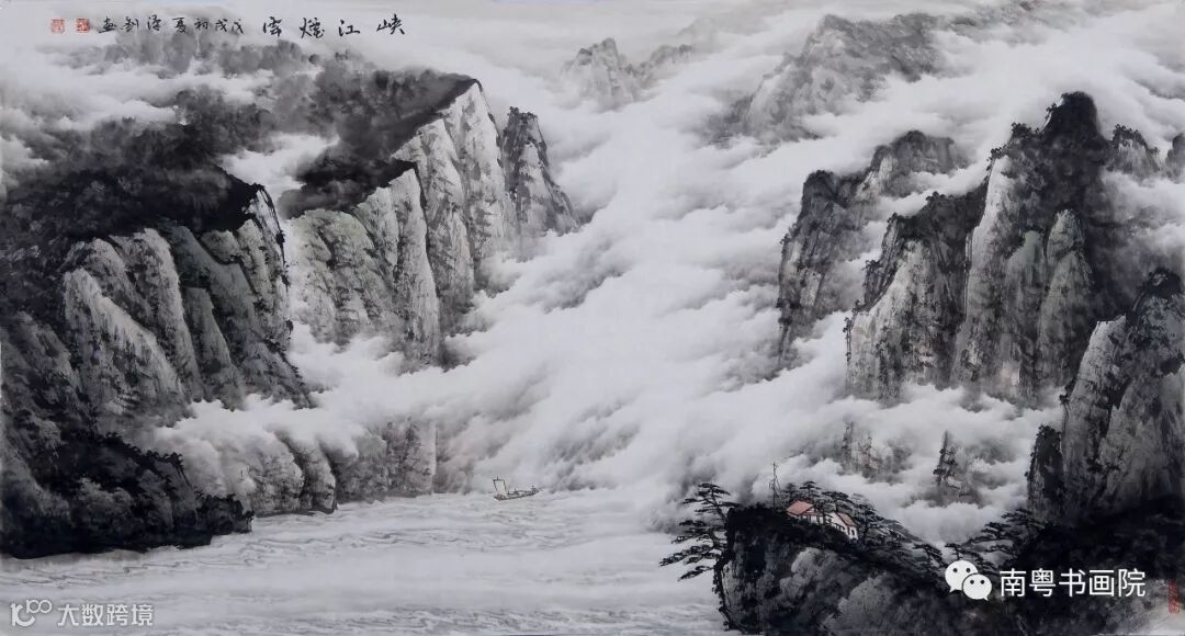 作画,情与义是画家的操守。用心去画,给人以感染至关重要。梁汉钊君从一位花农到一位有声于时的山水画家的华丽蜕变,得益于其勤勉好学,得益于其天资聪颖,更得益于其不断地修炼和养育自我的云水襟怀。我醉心于他擅作风起云涌、壮丽磅礴的巨幅山水,也极欣赏他那些刻画入微、云海天风、舒徐变幻的小幅山水之作,我亦已看出一点端倪:汉钊的画笔,在追逐广大宏阔场景、精微刻画细节的同时,逐渐走向更雄浑大气的写意境界,更震撼人心。
