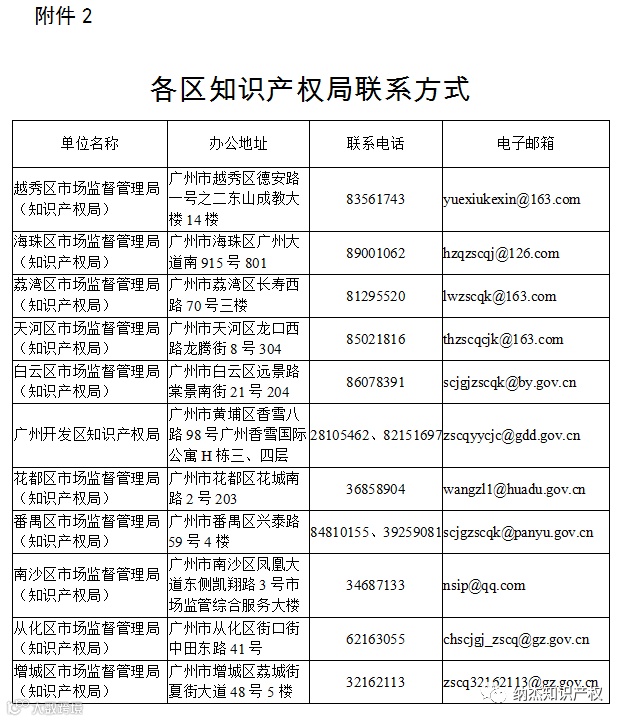业务咨询电话:各区知识产权局联系方式见附件2。