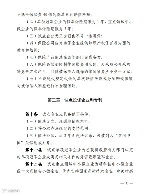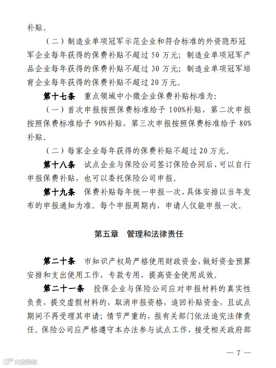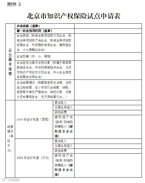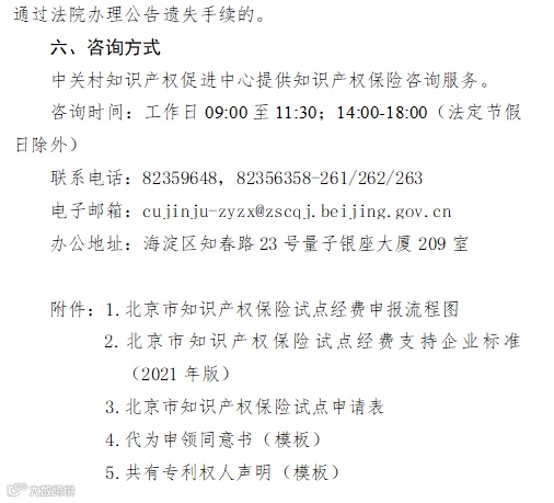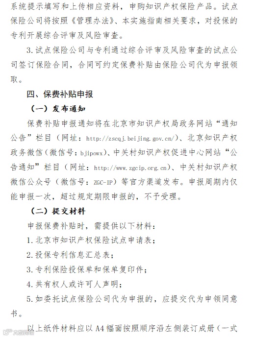 2.有关保费补贴方式及具体要求详见《北京市知识产权保险试点工作管理办法》《2021年北京市知识产权保险试点工作实施指南》,具体保费补贴申报通知在人保财险按照要求确定可以投保的企业及专利后发布。