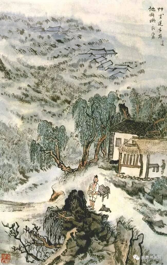 在读书中,知道一些历史地理、鸟兽鱼虫等知识,对于画也有直接的帮助,而尤其重要的是,当翻开一篇好文章或一首诗出声或不出声的涵泳咀嚼欣赏其声词之韵味,文采绚丽之极致,进而推论它的结构虚实,粗细繁简,从而激发情感创造意境,把书本上的感受转移到画面上去,那么这种第一流的智识情操,经过吸收融化,自然形成一个特殊画面。
