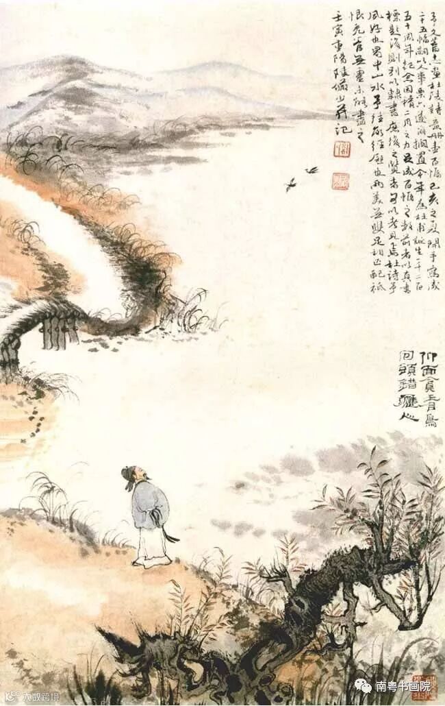 学画的提高,还必须借重其他学问,扶挟而上。通常称“诗、书、画”,这三者是互相最接近的姐妹艺术。如果只学画而不接触诗与书,也一定会妨碍以后的提高。古人称读万卷书,行万里路。体验大自然外,又须读一些古典文学书,增加历史、地理知识。读了书,不仅题画避免常写空款,题上几句,可以通顺一些,不闹笑话。主要是研习了诗古文词,可以开拓胸襟,培养意境,改变气质。如果能够自己赋诗作文,当然最好,否则也必须能够欣赏,撷取其中营养,不是这样,会感到营养缺乏,发育不良。