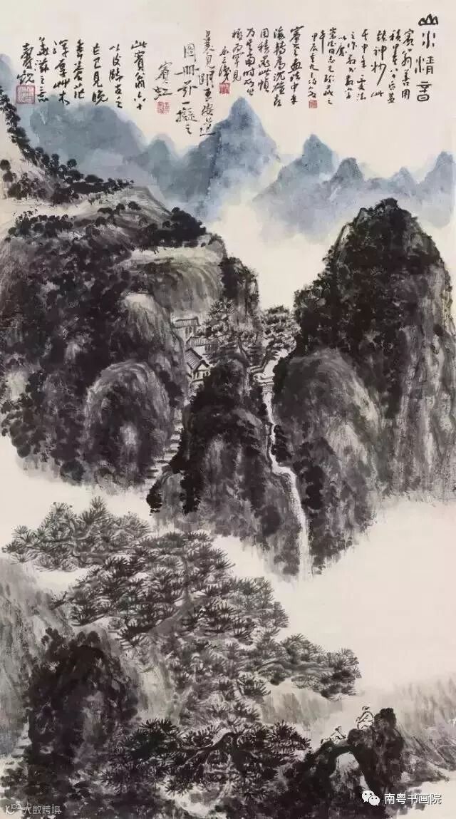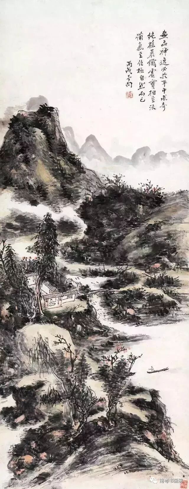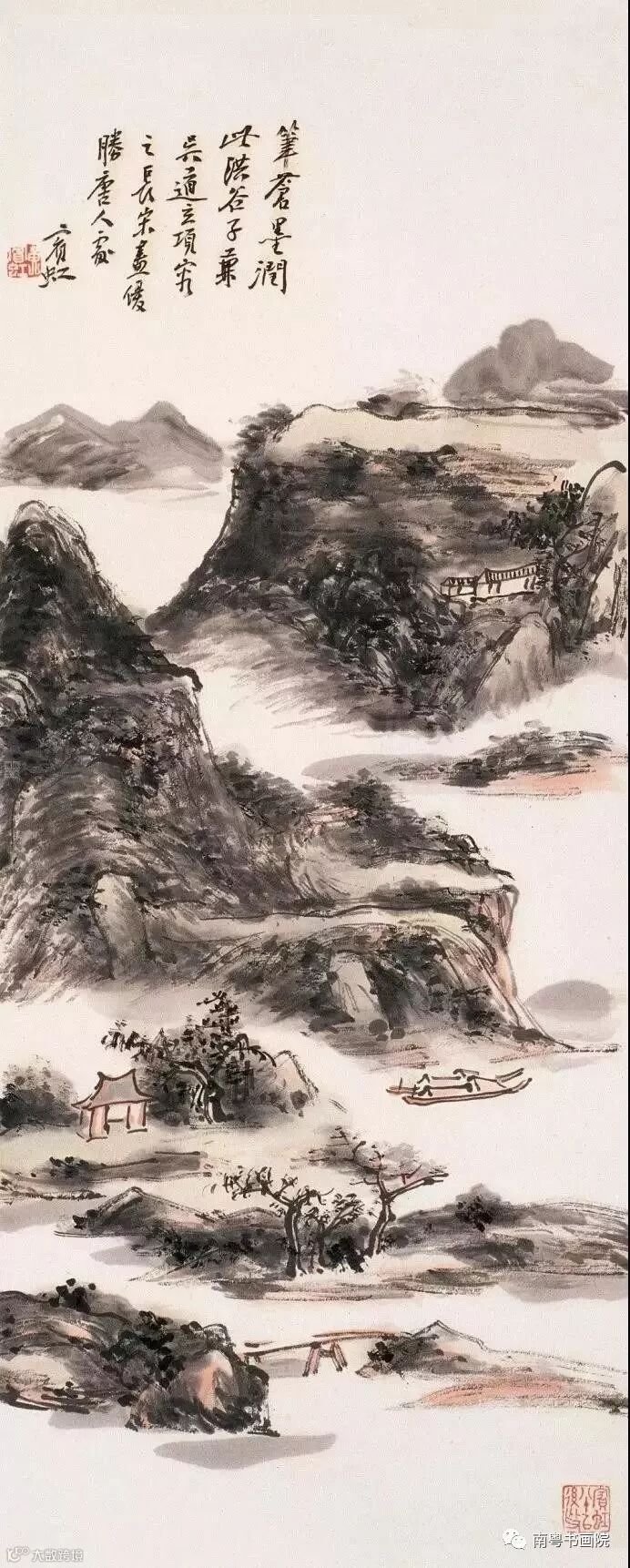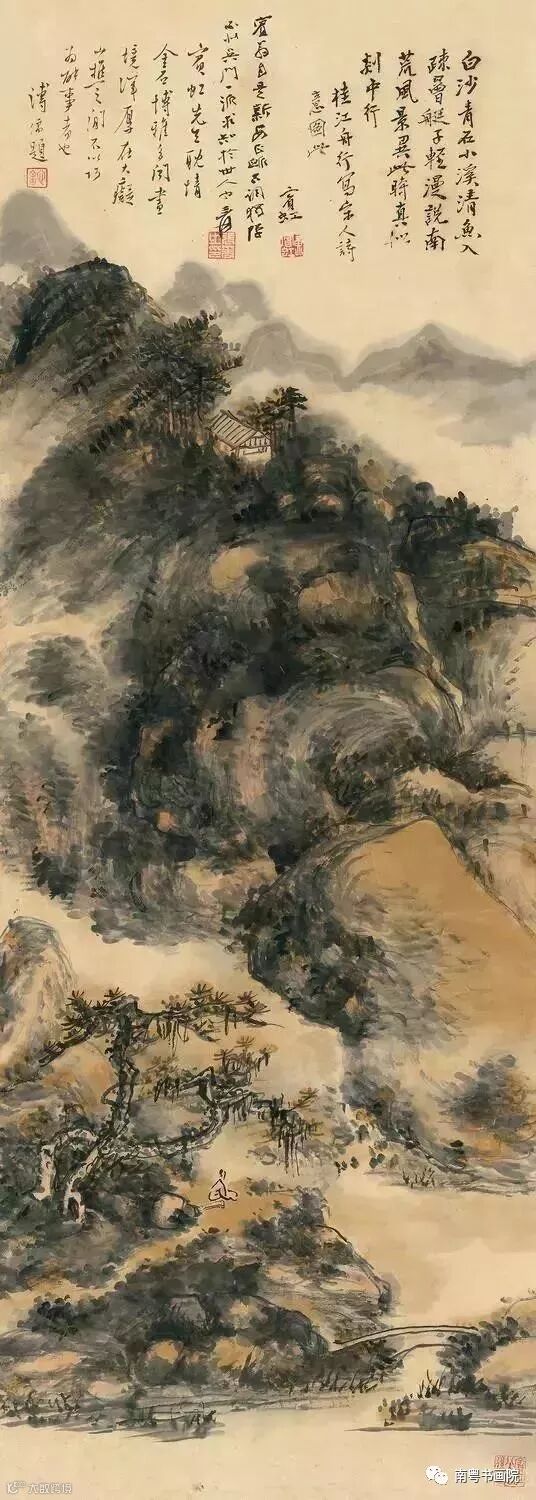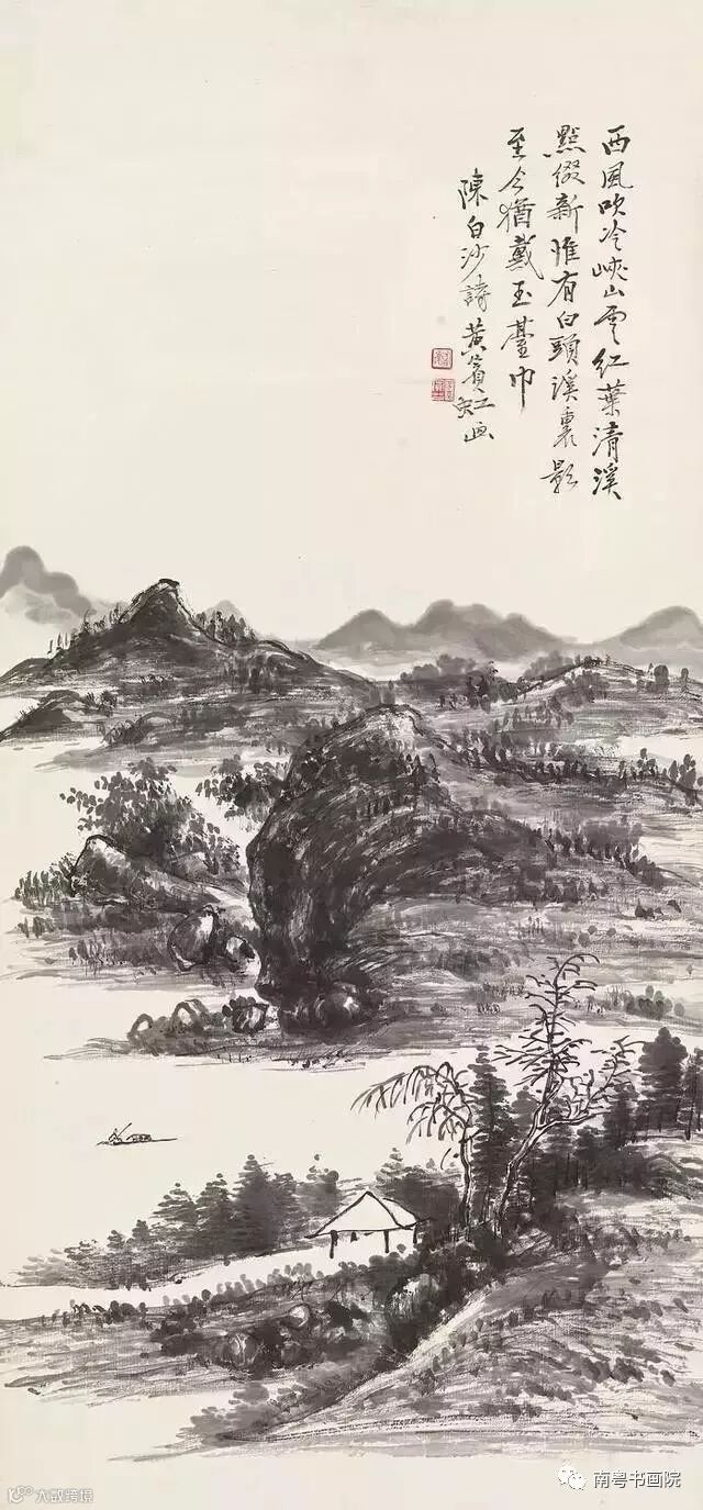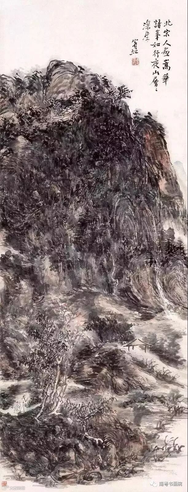 明清两代的山水画家受旧理法的束缚制约,形成了一股强大的保守势力。清初的石涛是个勇敢的探索者,他向旧法度发起了冲击,虽然有一些突破,但仍未能摆脱它们的羁绊。于清末,陆恢、林纾一辈的山水已呈颓势,中国山水画的绘画语言已经到了不能再枯燥的地步了。时势造就了黄宾虹。黄宾虹创造的乱中求新、乱中求趣、乱了低俗者的画法,彻底摆脱了旧程式的制约,而给人耳目一新的感觉,他纵情笔墨,肆意发挥,把中国画的“书写性”发挥的淋漓尽致,完全进入了一个自由创作,展示个性和才华的自我世界,是中国现代山水画之父。他的画格调高、功底厚,每一幅画对我们来讲都是一部课讲稿。他的画曲高和寡,至今还不能完全被人所认识和认同,他在美术史上的地位和他作品的市场价位还远远没有到位。