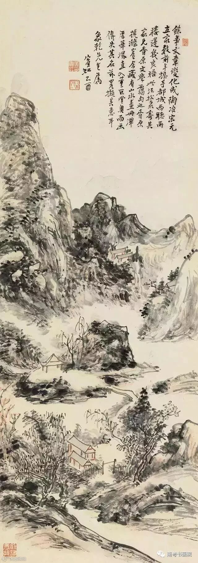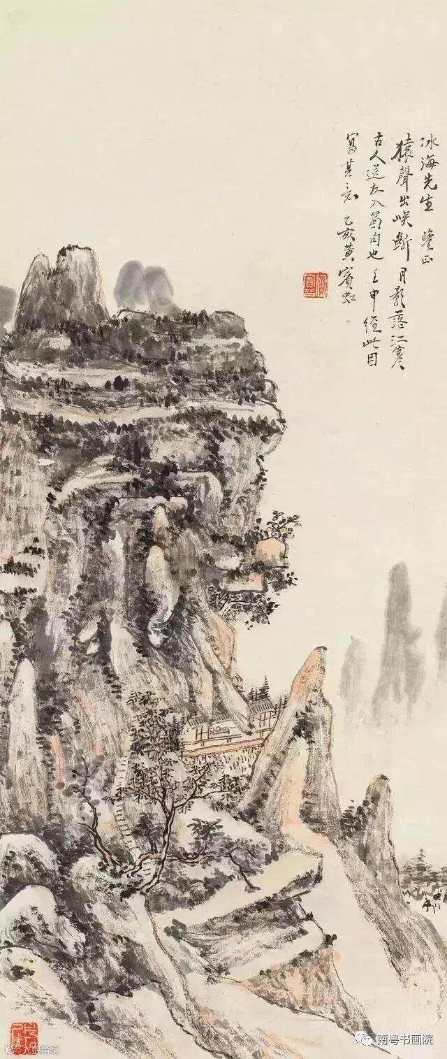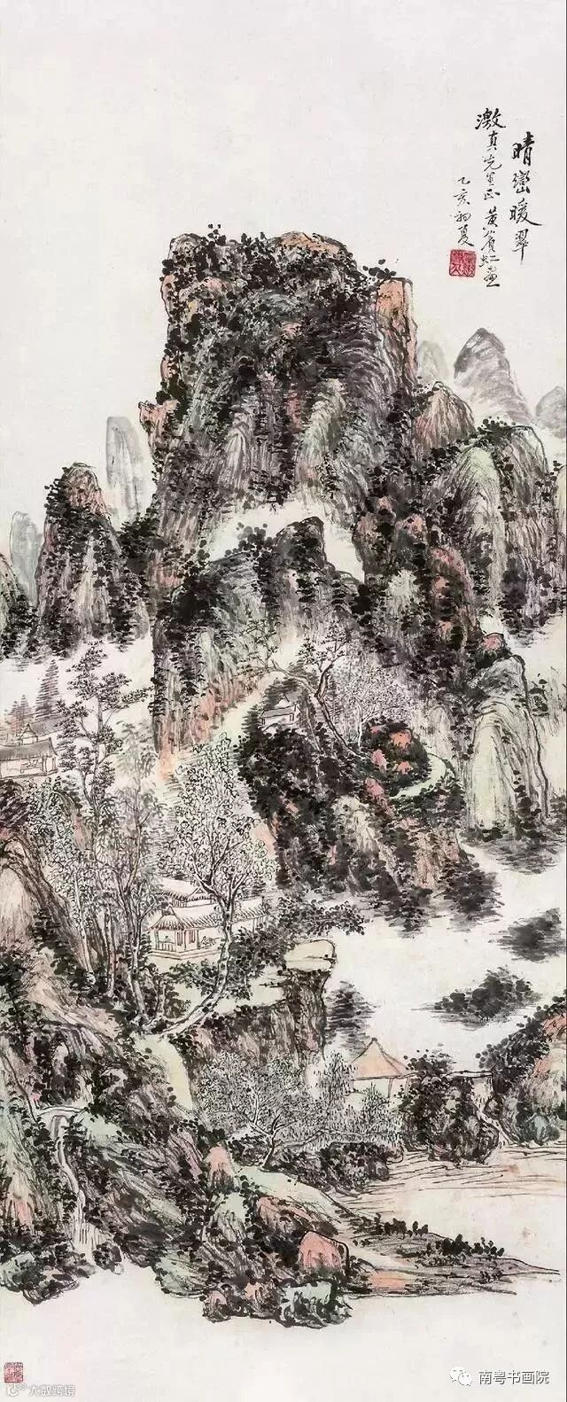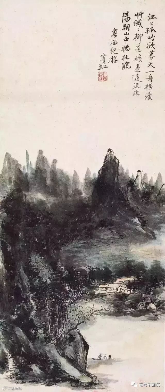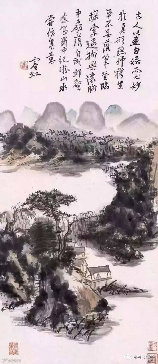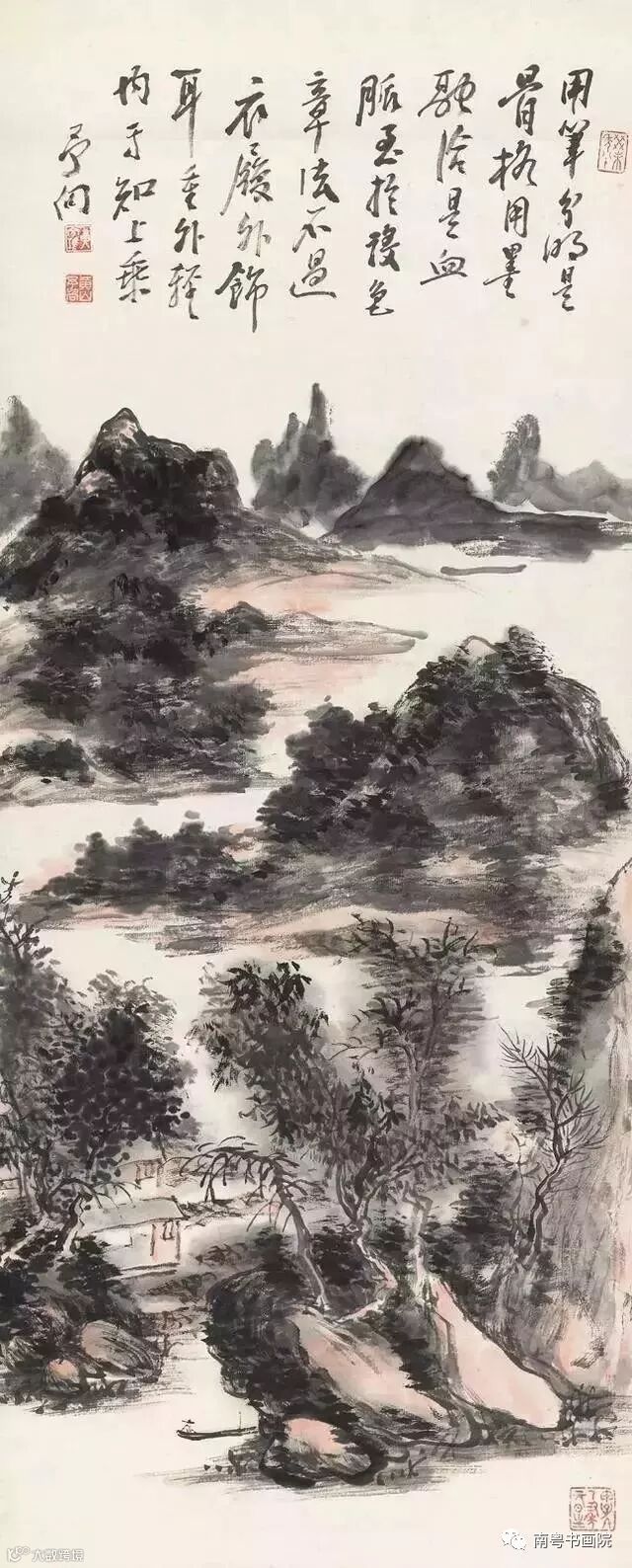 明清两代的山水画家受旧理法的束缚制约,形成了一股强大的保守势力。清初的石涛是个勇敢的探索者,他向旧法度发起了冲击,虽然有一些突破,但仍未能摆脱它们的羁绊。于清末,陆恢、林纾一辈的山水已呈颓势,中国山水画的绘画语言已经到了不能再枯燥的地步了。时势造就了黄宾虹。黄宾虹创造的乱中求新、乱中求趣、乱了低俗者的画法,彻底摆脱了旧程式的制约,而给人耳目一新的感觉,他纵情笔墨,肆意发挥,把中国画的“书写性”发挥的淋漓尽致,完全进入了一个自由创作,展示个性和才华的自我世界,是中国现代山水画之父。他的画格调高、功底厚,每一幅画对我们来讲都是一部课讲稿。他的画曲高和寡,至今还不能完全被人所认识和认同,他在美术史上的地位和他作品的市场价位还远远没有到位。