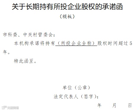 4.投资机构承诺将持有所投资企业股权时间超过5年的相关材料(有相关承诺的机构需提供)。