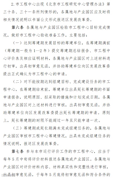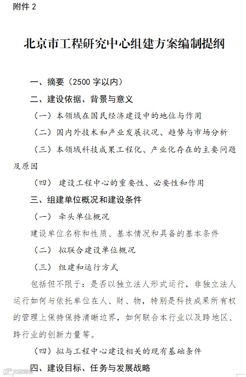 (一)请贵单位组织本辖区内工程中心和创新能力建设项目的申报工作,指导申报单位编制北京市工程研究中心组建方案(附件2)。已组建北京市工程研究中心、北京市工程实验室的牵头单位不得在原申报方向重复申报。