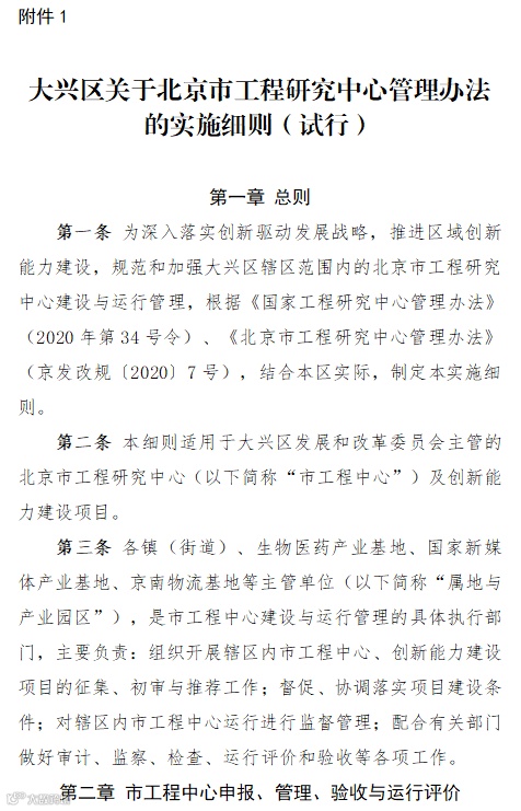 北京市大兴区发展和改革委员会关于申报2021年北京市工程研究中心的通知