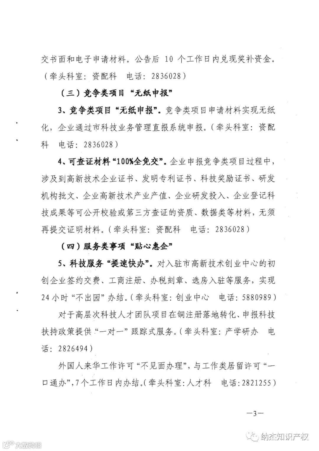 铜陵市“科技直通车”对高新、专利等奖补项目“免申即享”!