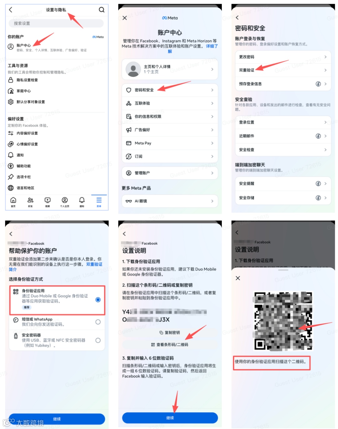 获取验证码:扫描成功后,App会自动生成一个名为“Facebook”的6位动态验证码,该码每30秒会自动更新一次。