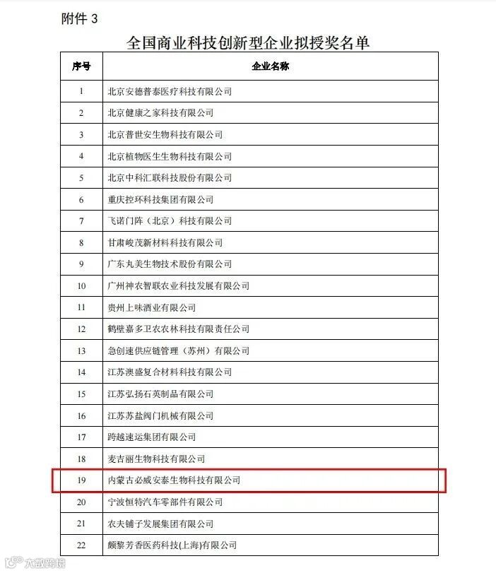 导读:2022年12月23日,内蒙古必威安泰生物科技有限公司荣获“全国商业科技创新型企业”和“全国商业科技进步奖(一等奖)” 两项殊荣。此荣誉是中国商业联合会以及各级政府对内蒙古必威安泰生物科技有限公司口蹄