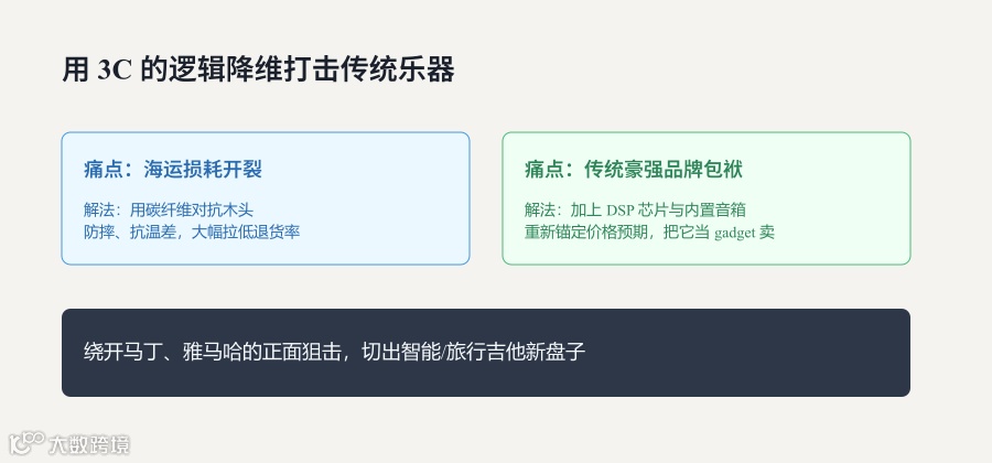 今天我们不吹它的产品多牛,我们只拆解一个问题: 把吉他做成这样,到底解决了跨境电商的什么痛点?而这种“非共识”的代价又是什么?
