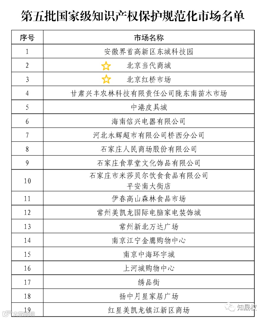 1 第五批国家级知识产权保护规范化市场名单