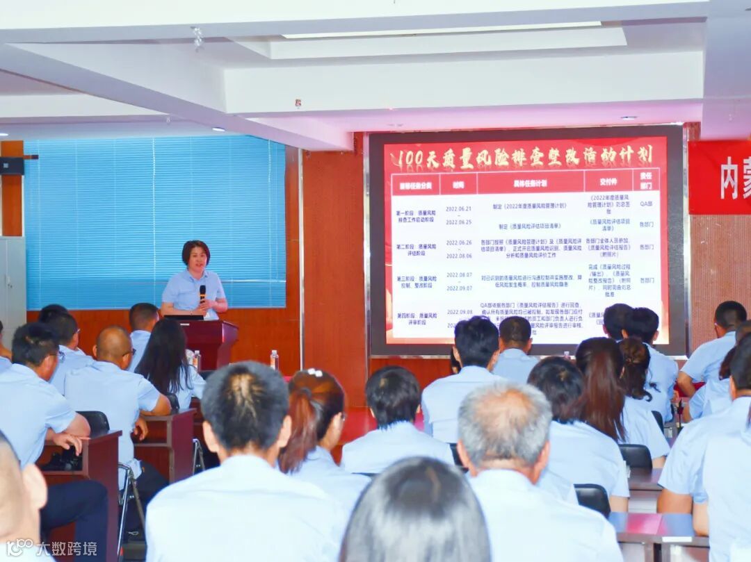 质量总监王国华指出,“风险”是危害发生的可能性和严重性的组合,质量风险管理的目的是按照一个完整的风险管理流程,使风险发生的可能性降低或者提高风险发生时的可预测性,将风险降低到可接受程度。质量风险管理由风险评估、风险控制、风险回顾三个部分组成,风险评估包括风险识别、风险分析和风险评价三个阶段。风险沟通贯穿于风险管理的各个阶段。产品质量是从产品的研究、设计、生产、检验、运输,储存、销售等全过程的控制,从人、机、料、法、环、测,六个因素严格排查质量风险,起到防患未然的作用。各部门须根据“100天质量风险排查整改活动”实施计划要求,按时完成任务。从每个细节做起,严格把控产品质量,对质量风险认真评估、控制、回顾,以保证产品质量。