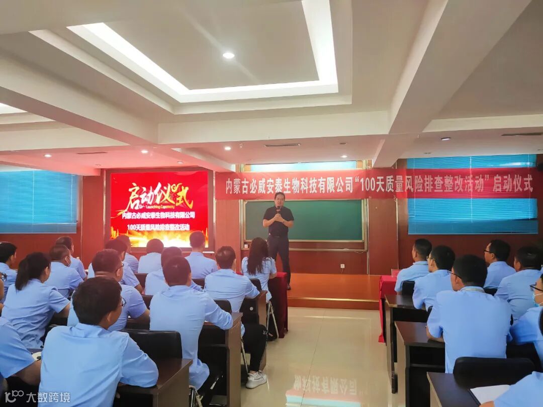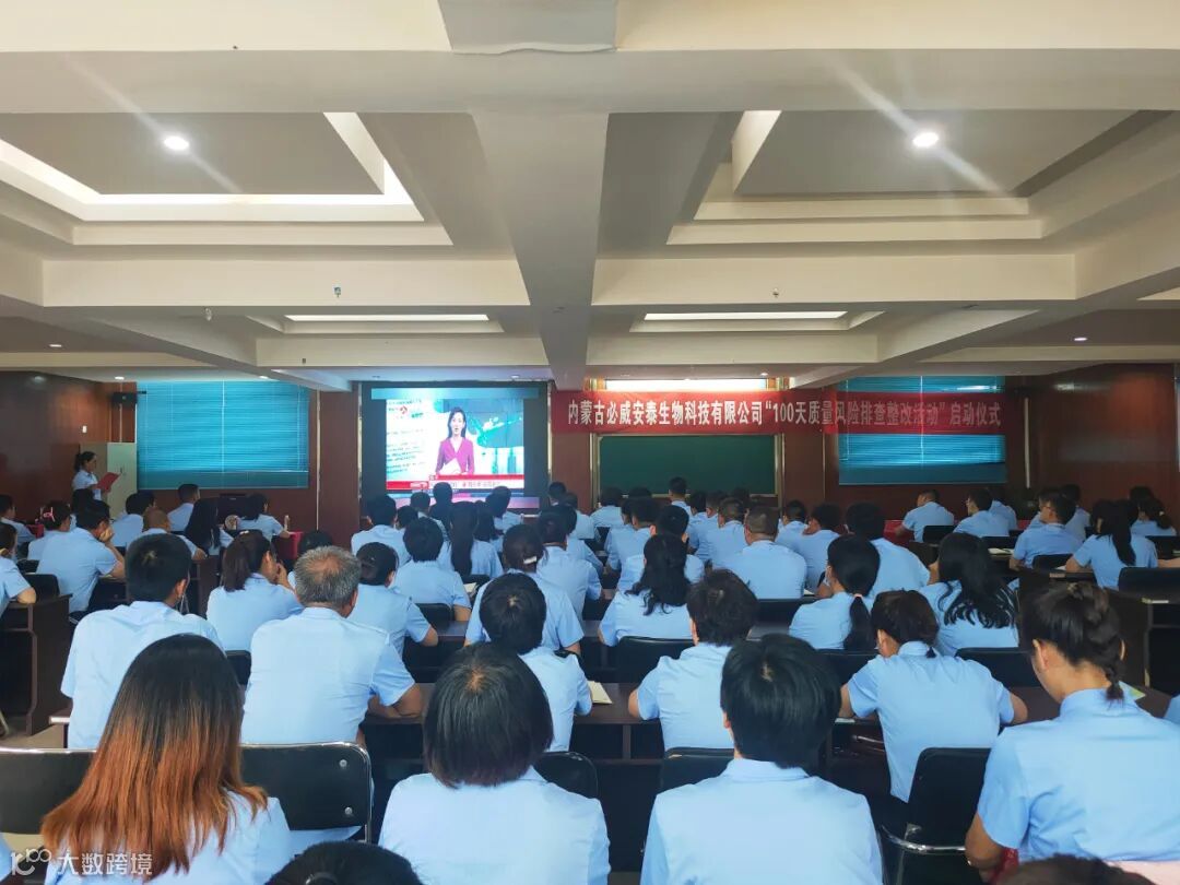 质量引领着企业的进步,开拓企业的宽度,质量决定生存,品质赢得信赖。根据兽药生产质量管理规范(2020年修订)中质量风险管理的要求,排查所有质量隐患。2022年06月21日上午09时,内蒙古必威安泰生物科技有限公司召开“100天质量风险排查整改活动”启动仪式,必威安泰各部门领导及全体员工参加了本次活动启动仪式。