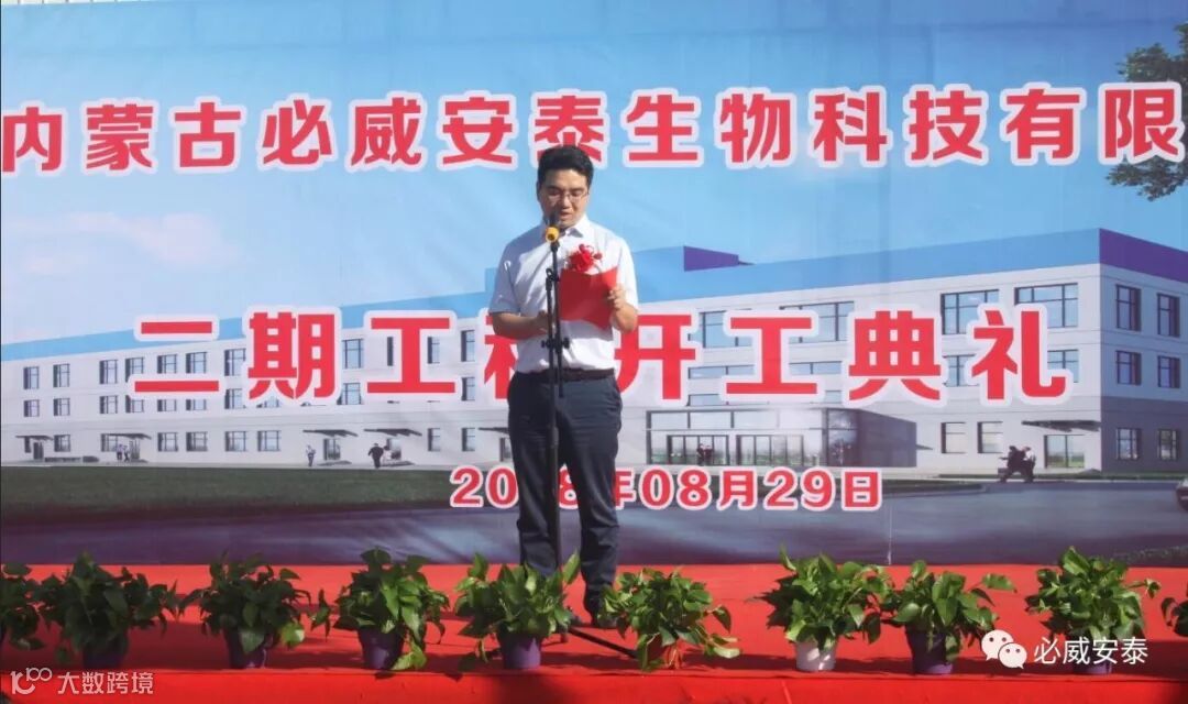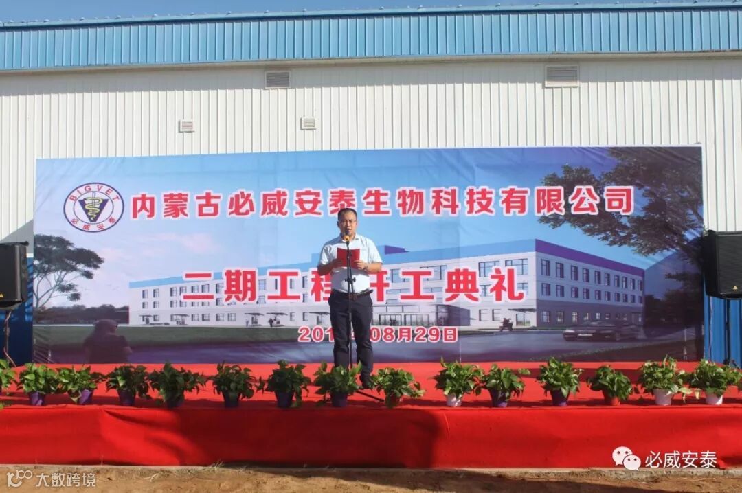 在总经理助理康念山主持下,公司总经理王永伟先生致辞,向前来参加二期工程开工典礼的各位领导、各位来宾及全体员工介绍了二期工程建设的重大意义,并鼓励员工再接再厉,不断创新,为企业发展添砖加瓦。王总表示,二期工程的建设不仅是必威安泰的一件大事,一件喜事,更是兽医生物制品行业的一件大事,一件喜事,这是农业部实施国家口蹄疫防治计划(2016-2020 年)战略、打造免疫无疫区的重大决策,是农业布局、改善三农问题的实际行动。二期工程的开工标志着必威安泰二期生产枢纽基地工程建设项目正式开启建设序幕。