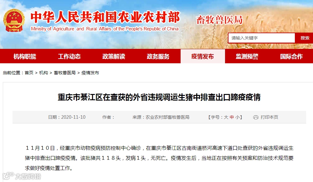 据官方公布的消息,今年我国已发生5起口蹄疫疫情,分别是: