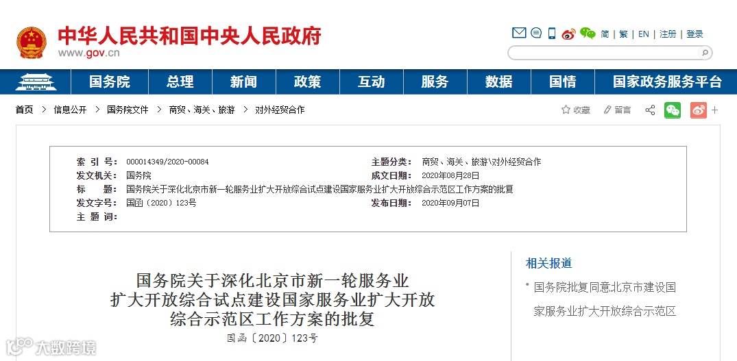 你们关于深化北京市新一轮服务业扩大开放综合试点、建设国家服务业扩大开放综合示范区的请示收悉。现批复如下: