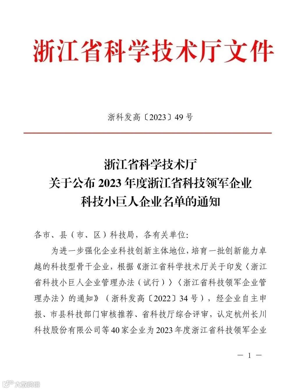 日前,浙江省科学技术厅2023年度“浙江省科技领军企业、科技小巨人企业名单”已公布,杭州天创环境科技股份有限公司荣获2023年度浙江省“科技小巨人”企业称号